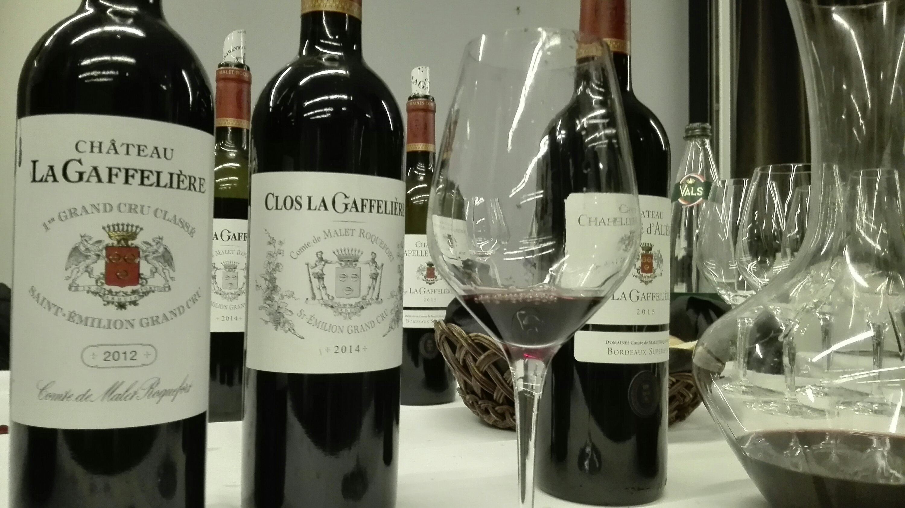 Vengono proposti due millesimi di Saint-Emilion grand cru classé. Il 2012, rubino con già qualche riflesso granato, ci viene incontro con un bouquet che spazia dalle note floreali, a quelle di fragola e mora, al cioccolato, a un sentore vanigliato che tende quasi alla cipria. Ha una buona struttura, con tannini di grande finezza. 89.